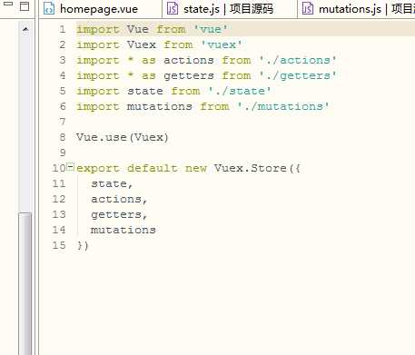 然后在src下新建文件夹store并且新建几个js文件,具体的格式如下: