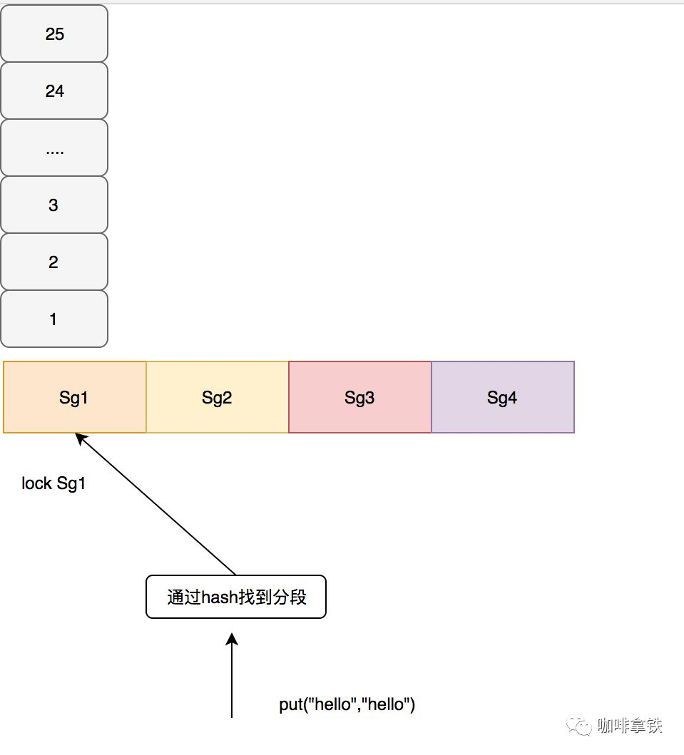 上面segmentCount就是我们最后的分段数,其保证了每个段至少10个Entry。如果没有设置concurrencyLevel这个参数,那么默认就会是4,最后分段数也最多为4,例如我们size为100,会分为4段,每段最大的size是25。 在guava cache中对于写操作直接加锁,对于读操作,如果读取的数据没有过期,且已经加载就绪,不需要进行加锁,如果没有读到会再次加锁进行二次读,如果还没有需要进行缓存加载,也就是通过我们配置的CacheLoader,我这里配置的是直接返回Key,在业务中通常配置从数据库中查询。 如下图所示: