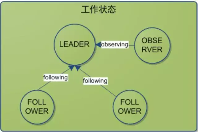 FOLLOWING:leader已经选举出来,当前Server与之同步。