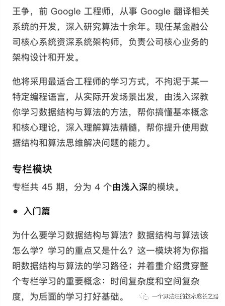 这是最近极客时间新推出的一门入门级别的数据结构与算法课程,主讲人是前谷歌工程师: