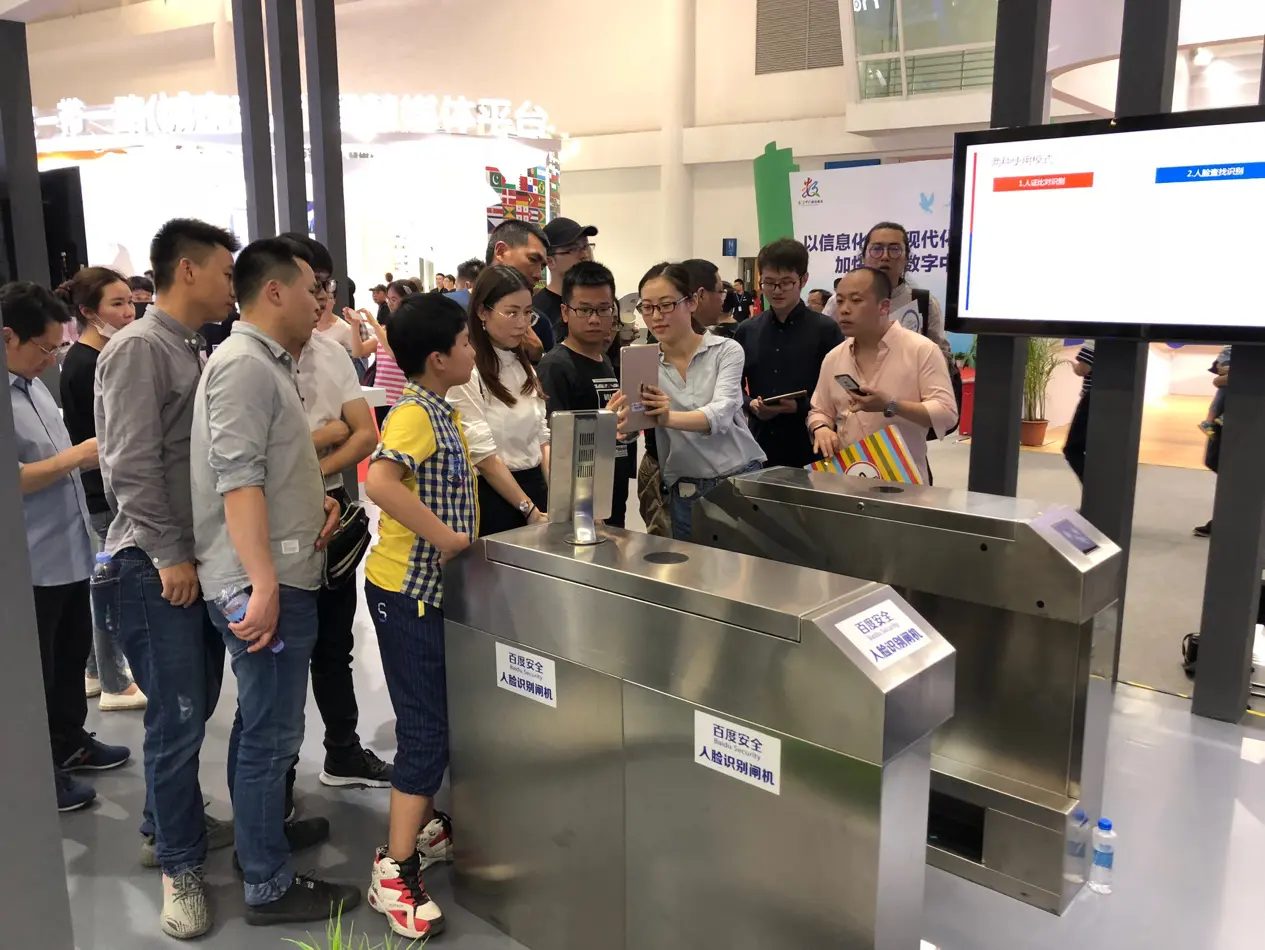 在百度展厅里,人脸识别闸机前总是聚集着很多参观者,前来体验人脸识别闸机的观众络绎不绝。据工作人员介绍,百度人脸识别闸机已经在乌镇和首都机场等落地应用,为旅客打造更为优质便捷的智慧出行服务。