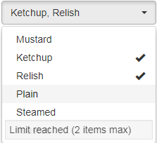 添加属性data-max-options="2"或者在初始化时用maxOptionsText做限制