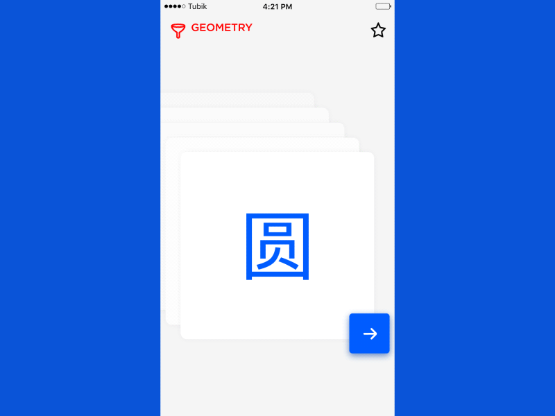 这是一款学习中文的app,主要是学习汉字和发音。卡片的一面向用户展示中文,另一面允许用户看它的拼音和翻译,并且点击即可以播放。用户可以保存卡片,标记他们的学习状态:已学习或未学习,有趣的UI交互设计使学习过程更加有趣,更具互动性。