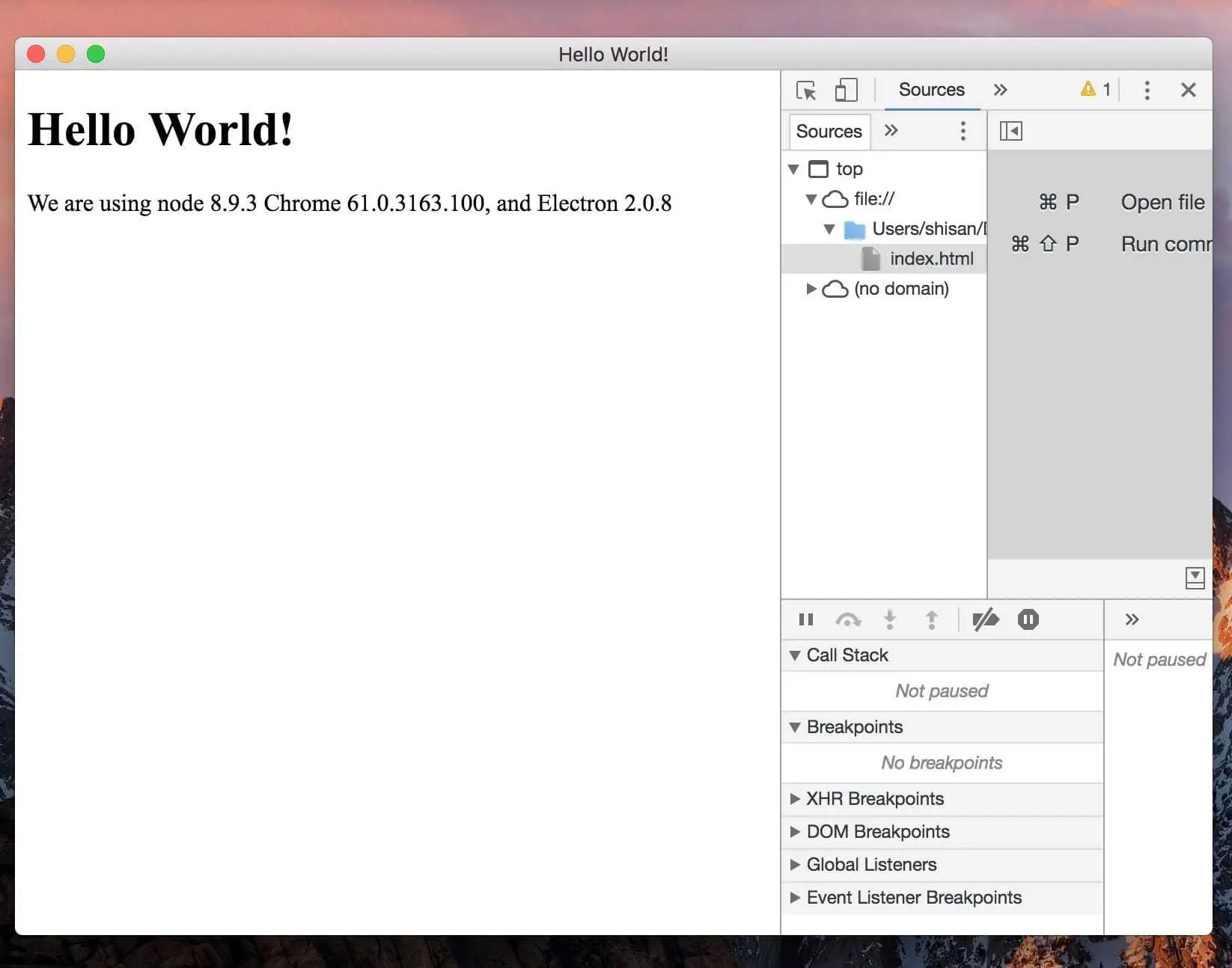 mkdir electron_hello && cd electron_hello && npm init -y && npm i electron -D