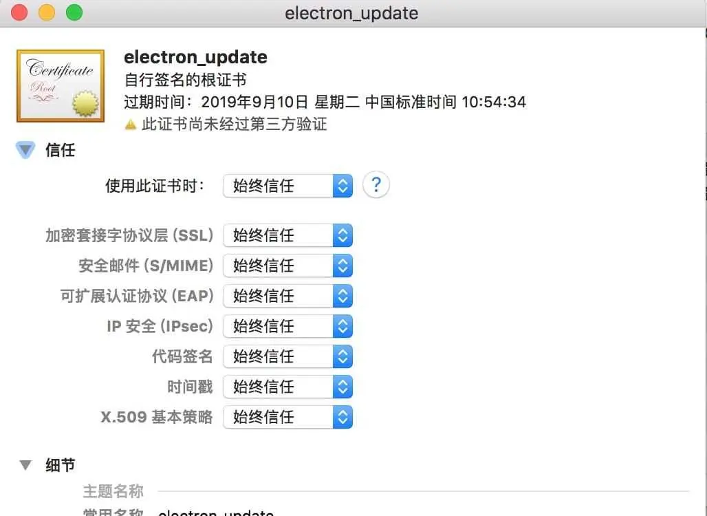 Electron 打包Mac安装包代码签名问题解决方案文中所说签名均需要是买了Apple开发者账号的。