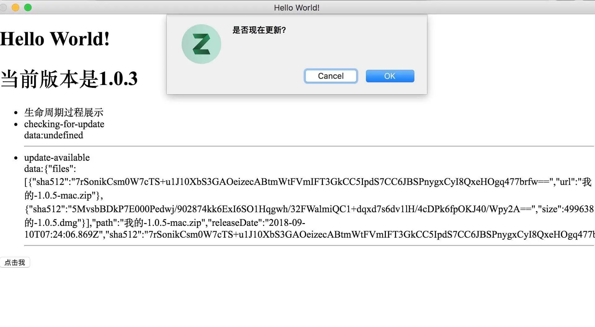 当我们点击按钮的时候,就可以进行更新应用了,如下图