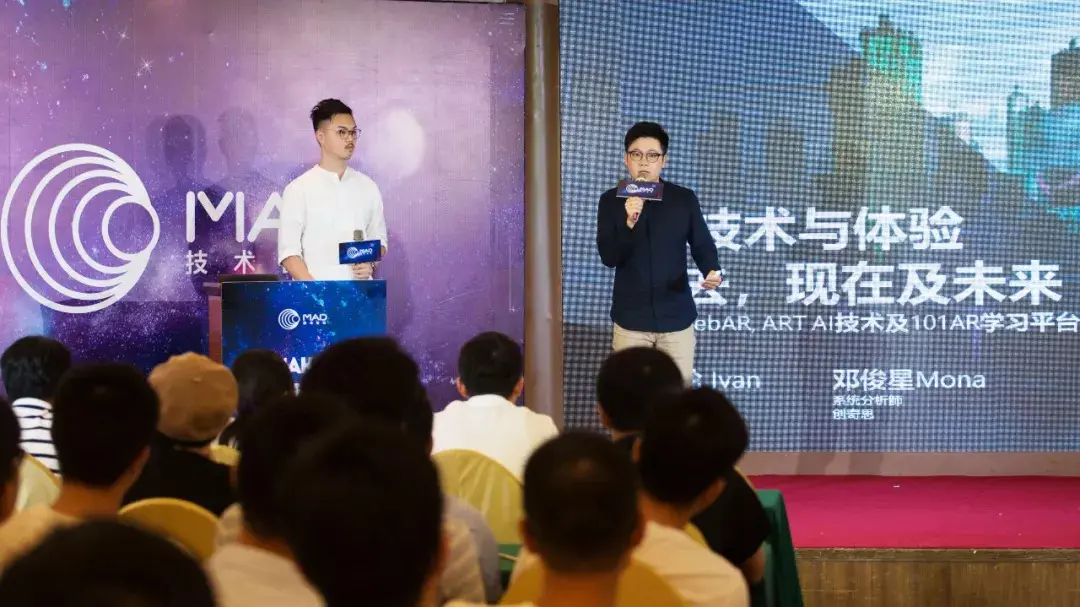 黄伟伦和邓俊星则结合创奇思在AR领域的先进技术和经验,和与会嘉宾分享了WebAR技术的发展、ART AI神经网络风格转移的技术介绍和实践以及101AR学习平台的技术介绍和实践等内容。