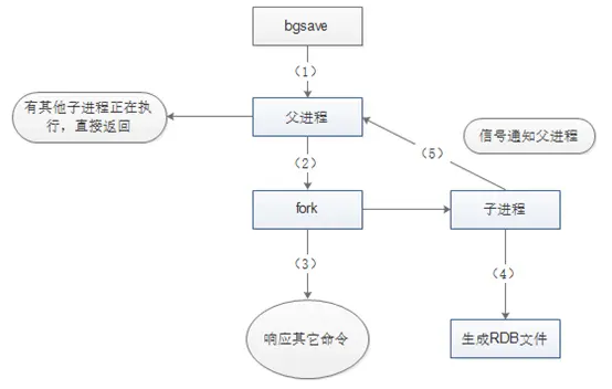 3) 父进程fork后,bgsave命令返回”Background saving started”信息并不再阻塞父进程,并可以响应其他命令