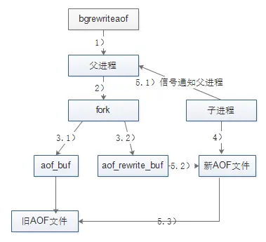 5.1) 子进程写完新的AOF文件后,向父进程发信号,父进程更新统计信息,具体可以通过info persistence查看。