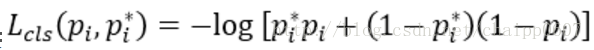 这依然是一个负的log值,,Pi为第i个参考框是物体的预测概率,Pi是一个指示函数,如果anchor是物体的话,Pi 就是1;如果anchor是背景,那么Pi* 就是0。