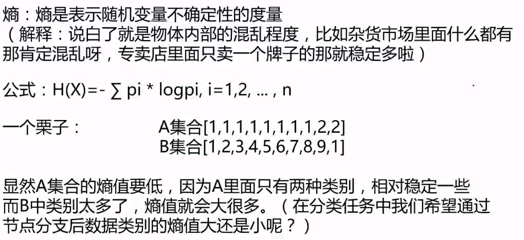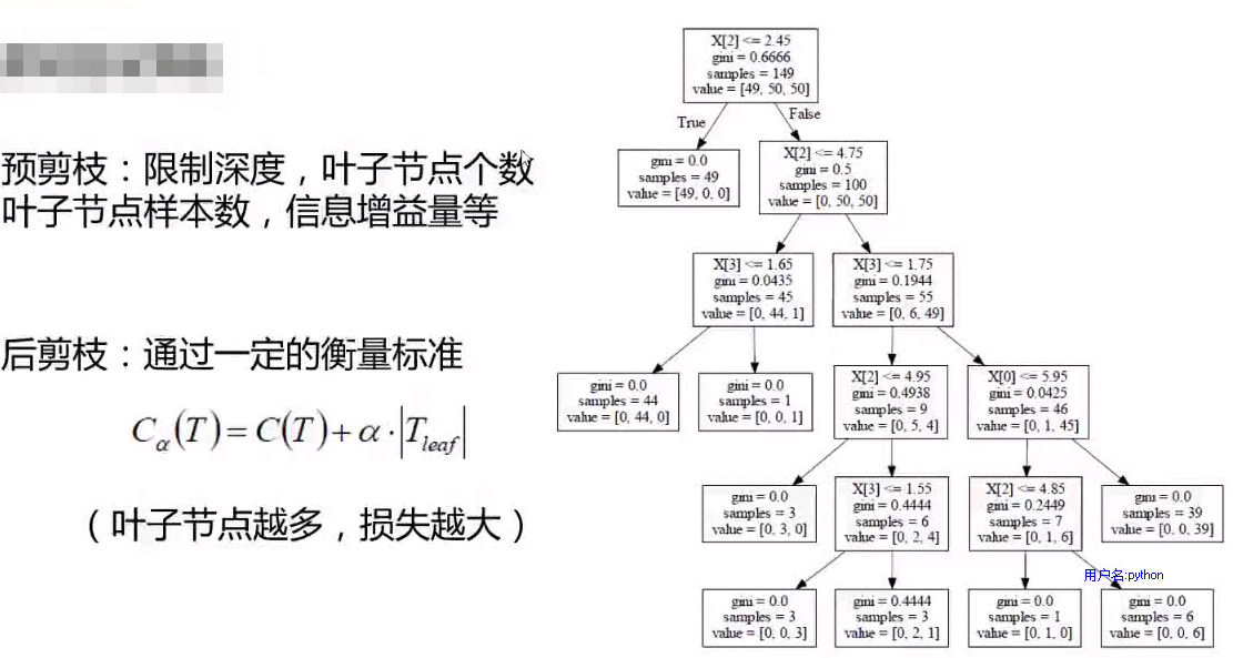 决策树随记 wakacaca 2018-09-18 98 阅读1分钟 衡量标准-熵 在0-1之间,对数取值为负,所以在公式前面添加一个负号。 所有特征全部遍历一遍,选择信息增益最大的那个作为非叶子节点。 信息增益比--实例 先对连续值数据做一个排序,然后寻找在哪个位置(离散点)对其进行切分。 剪枝策略 预剪枝比后剪枝更易于实现。