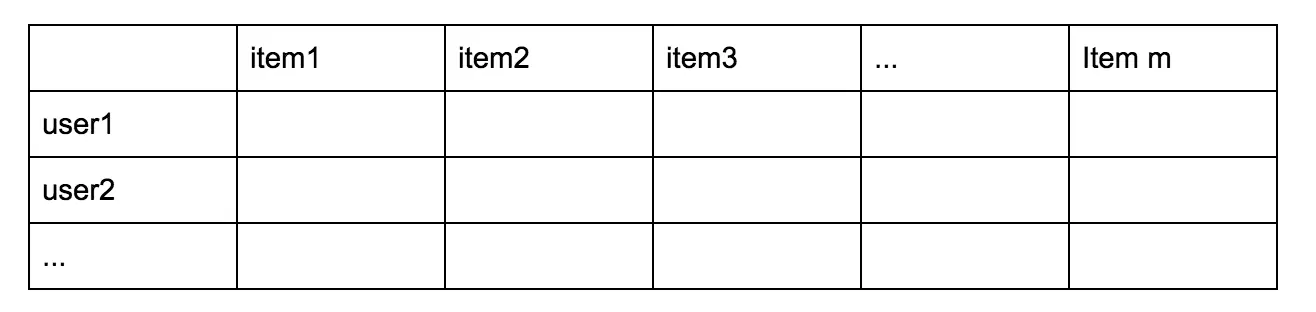 一个经典的推荐系统一般分为召回阶段和排序阶段,召回阶段是指从大量的(可能高达数十亿)的item中选定候选集(一般为几千到几百的范围)的过程,而排序阶段是指对候选集中的item按照用户偏好进行排序。本质上来说,所有推荐算法的目标都是识别用户对某一item的偏好,也就是说,对于如下的一个user-item-preference矩阵,我们需要预测其中任意一点的值:
