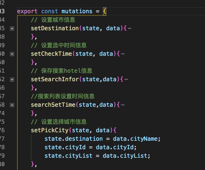 // 清除位置品牌酒店名称 clickClean(){ const data ={}; this.$store.commit('hotel/setPickCity',data); this.choose_type = false; },}若需要调用很多方法可以直接使用mapMutations进行调用