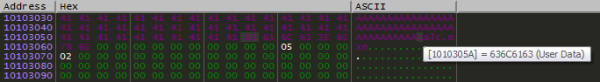 我们写入文件8字节+正确的字节(“2”),然后输入0x10101155,例如: