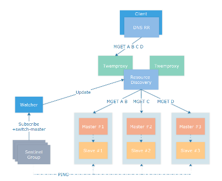 由于Twemproxy 仅进行高性能的命令转发,不进行读写分离,所以默认没有读写分离功能,而在实际使用过程中,我们也没有遇到集群读写分离的需求,如果要进行读写分离,可以使用资源发现策略在 Slave 节点上架设 Twemproxy 集群,由客户端进行读写分离的路由。