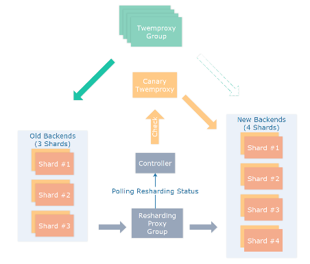 等待RDB 转发完成后,我们按照新的后端生成新的 Twemproxy 配置,并按照新的 Twemproxy 配置建立 Canary 实例,从上游的 Redis 后端中取 Key 进行测试,测试 Resharding 过程是否正确,测试过程中的 Key 按照大小,类型,TTL 进行比较。