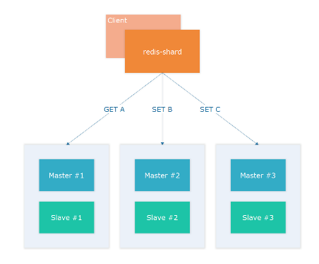 早期知乎使用redis-shard 进行客户端分片,redis-shard 库内部实现了 CRC32、MD5、SHA1三种哈希算法,支持绝大部分Redis 命令。使用者只需把 redis-shard 当成原生客户端使用即可,无需关注底层分片。