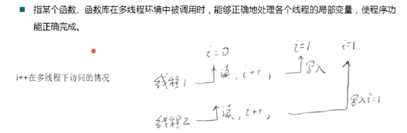 指做个线程访问并处理同一个局部变量,因为该变量被不同线程处理覆盖,导致该变量出现不可预测的错误,达不到预期的结果,就会出现线程安全问题。