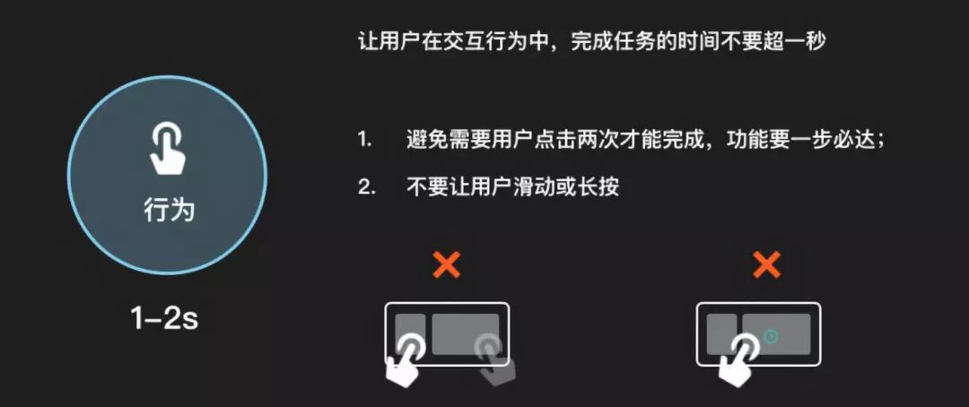用户在交互行为过程中从开始至结束时间上不能超过一秒: