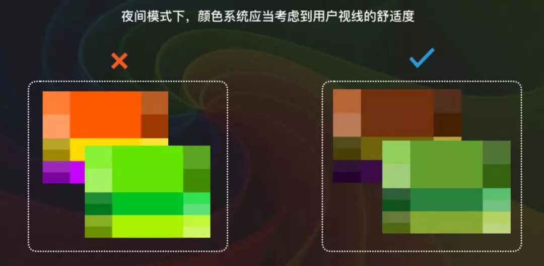 关于色彩,夜间模式下不宜过多使用高饱和的颜色。
