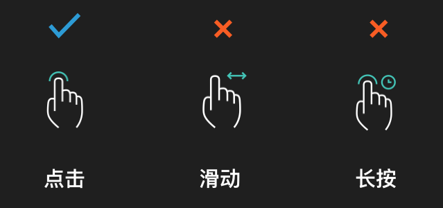 同时,在操控车载的过程中,点击仍然是最有效率的交互方式,滑动与长按在上述的3秒安全操作时间内,都会极大的增加操作难度和驾驶风险。