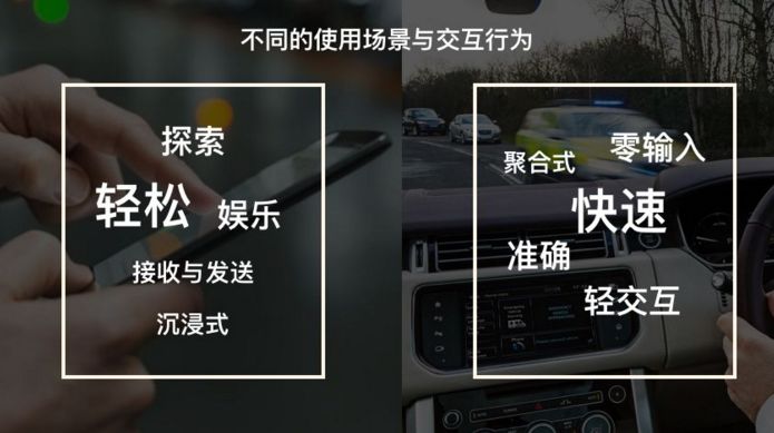 移动端系统为沉浸式操作,而车载系统不一样,在驾驶过程中,用户95%的精力在于聚焦驾驶上行为上,用户只能抽取仅5%左右的精力与时间来操控车载。因此也就决定了车载系统的功能逻辑,信息布局都必须在极短的时间内以最好的方式呈现。