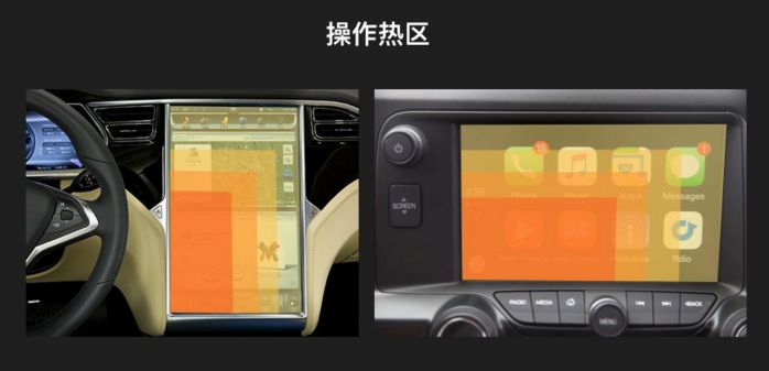由于车载有明显的操作热区,因此在功能与入口的布局上应尽可能的根据热区分布来设计。