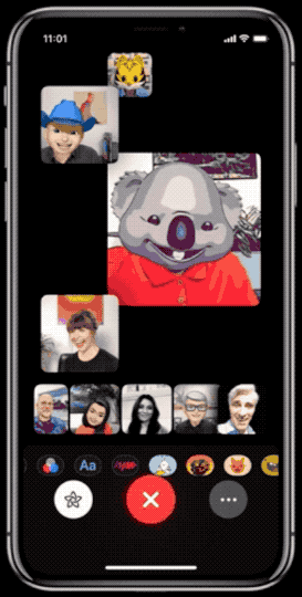 FaceTime群聊功能在 IOS 12 中将更加强大,这次可以支持32人同时视频聊天,还支持Memoji群聊,看着这种聊天方式,是不是很喜感!