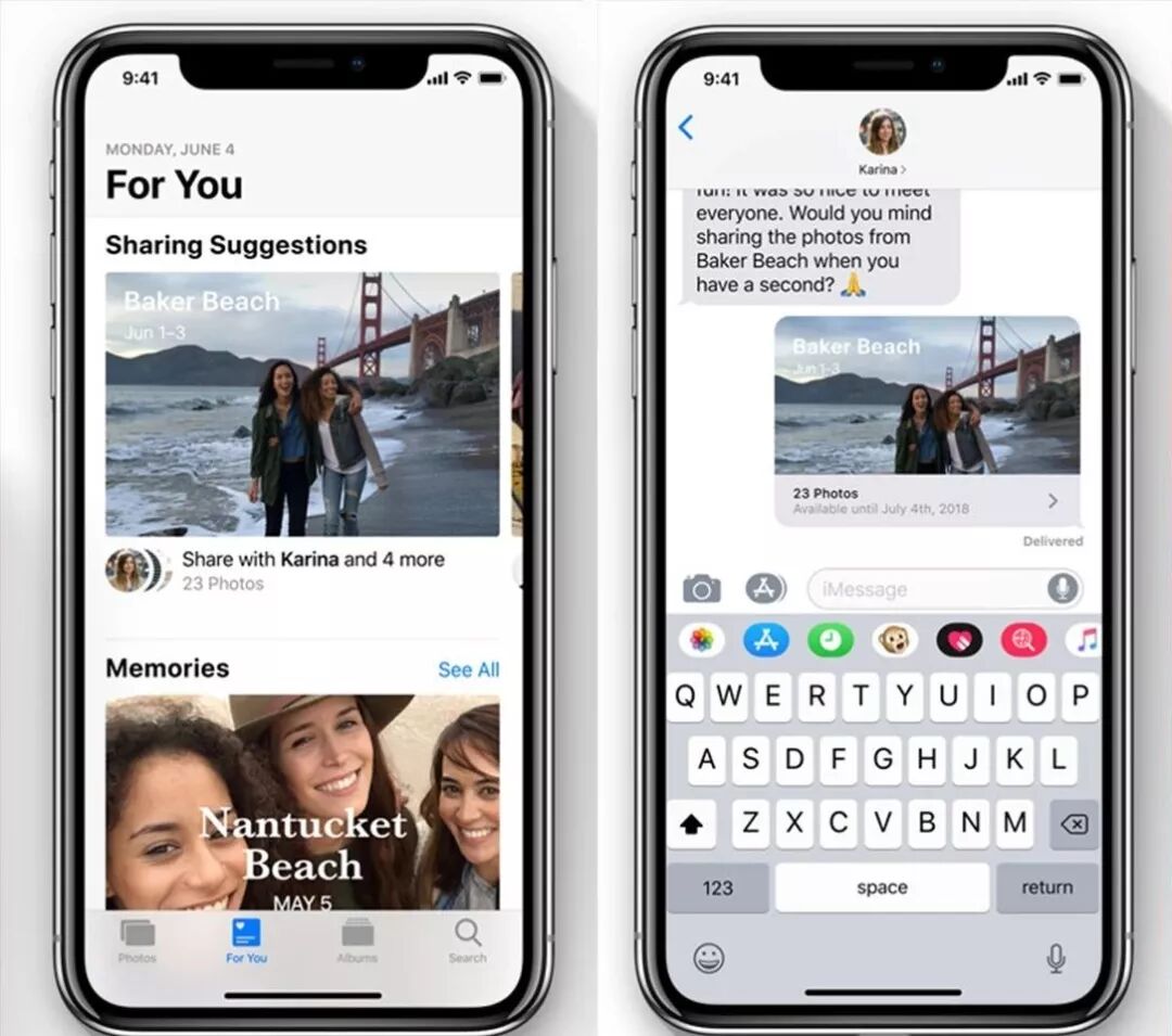 新增的“为你推荐”标签页会显示你照片图库中的精彩时刻,并智能地建议你与照片中的人共享照片。 如果接收方使用的是 iOS 12,系统也会提醒他们将手里的活动照片与你共享。