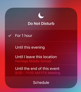 除了通过优化通知栏来减少对用户的打扰外,iOS 12 还提供了勿扰模式。 你可以设置针对某个时间 或地点开启勿扰模式,开启后你将不会被任何提醒、信息或电话打扰,一旦时间结束或你离开该地点,勿扰模式就会自动关闭。