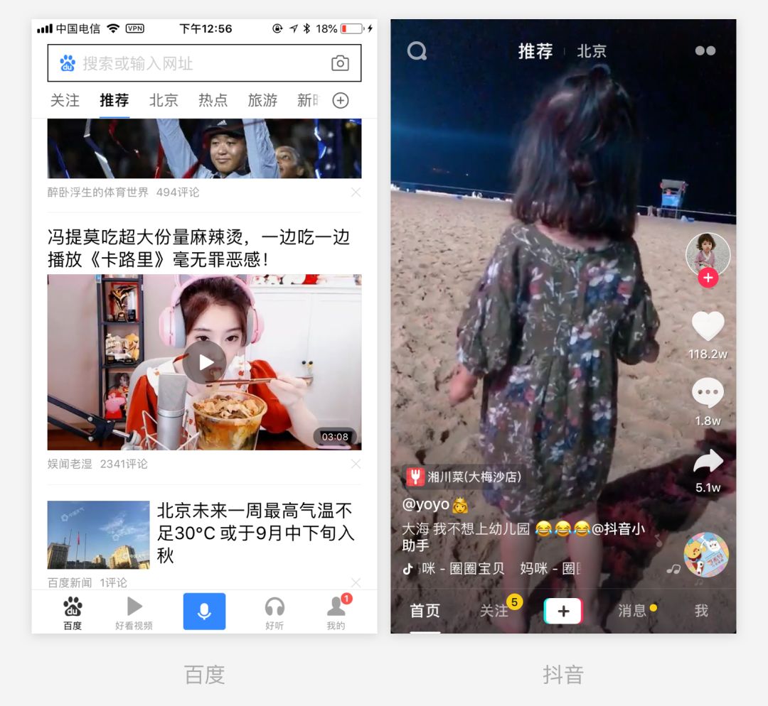 — 产品中的资源类型丰富,资源内容也特别多 eg. 抖音,我很喜欢看小孩和小动物相关的视频,所以我的推荐列表里主要就是这两类内容