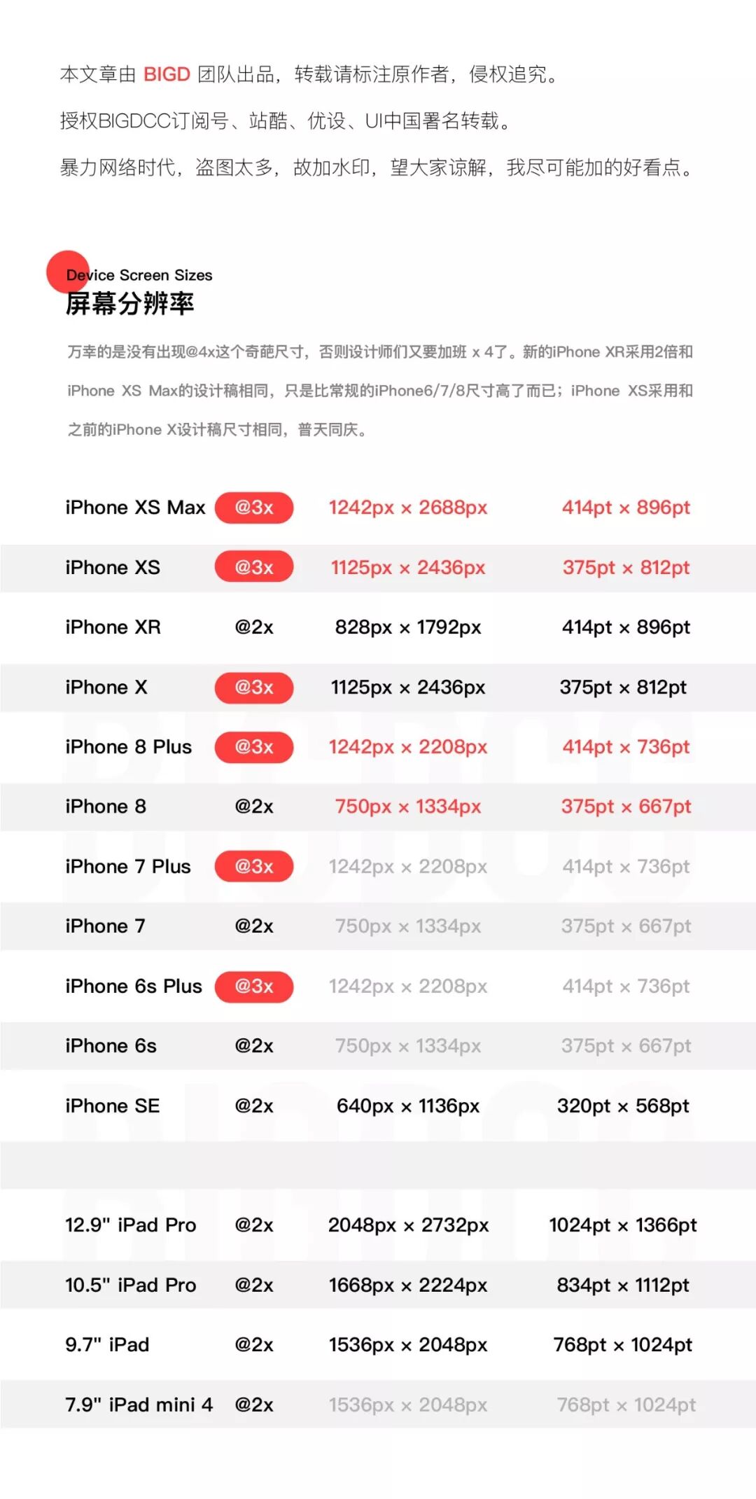 新的尺寸又出来了?又要重新计算?不用愁,BIGD团队为你准备好了全部的适配与尺寸,并且使用pt和px双单位标注,只要收藏好这篇文章,这一年做设计照这个尺寸做就行了!