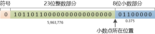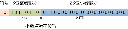 上图表示的数值就是182.375,由于小数点固定在了第23位和第24位之间,这种方式可以称为“定点数”。
