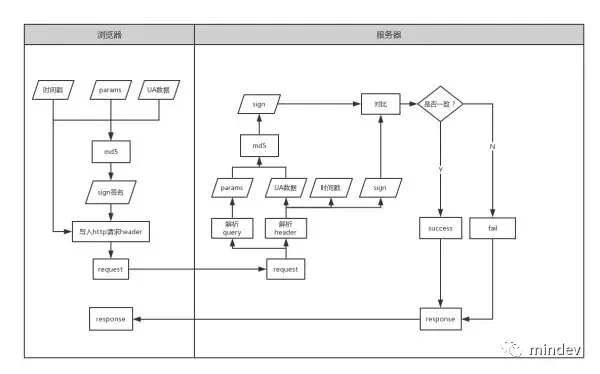 自定义安全验证 通常的方案是客户端与服务器约定好一个验证签名,客户端在发出http请求之前按照约定好的算法计算出一个签名字符串,并且在http请求中将计算签名的参数传递给服务器。服务器接收到请求之后,解析出签名字符串和客户端传递的计算参数,然后按照同样的算法计算出签名字符串,并将其与客户端的签名进行对比,完全一致则验证通过,否则返回验证未通过的数据。如下图: