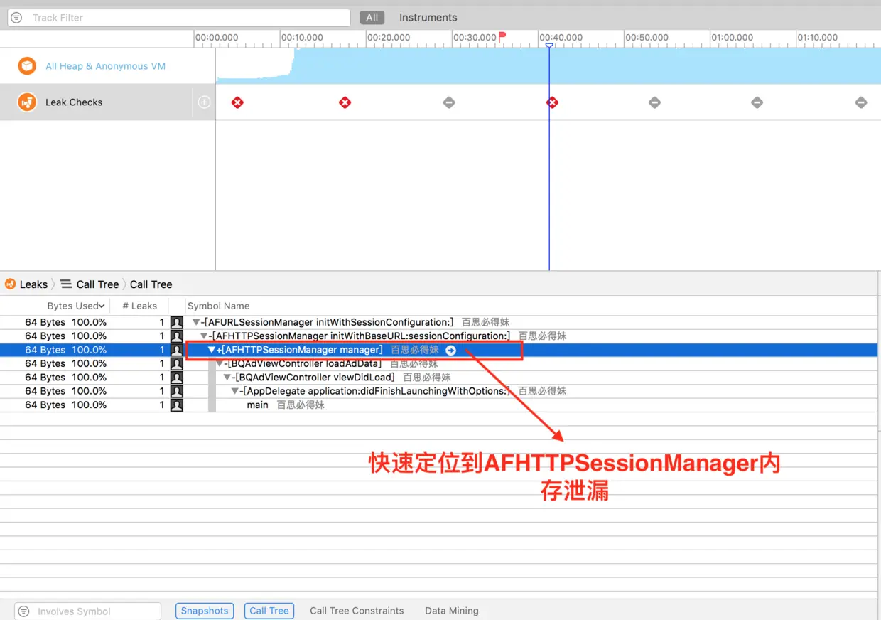 标签:「iOS」「内存泄漏排查」「Leaks工具」