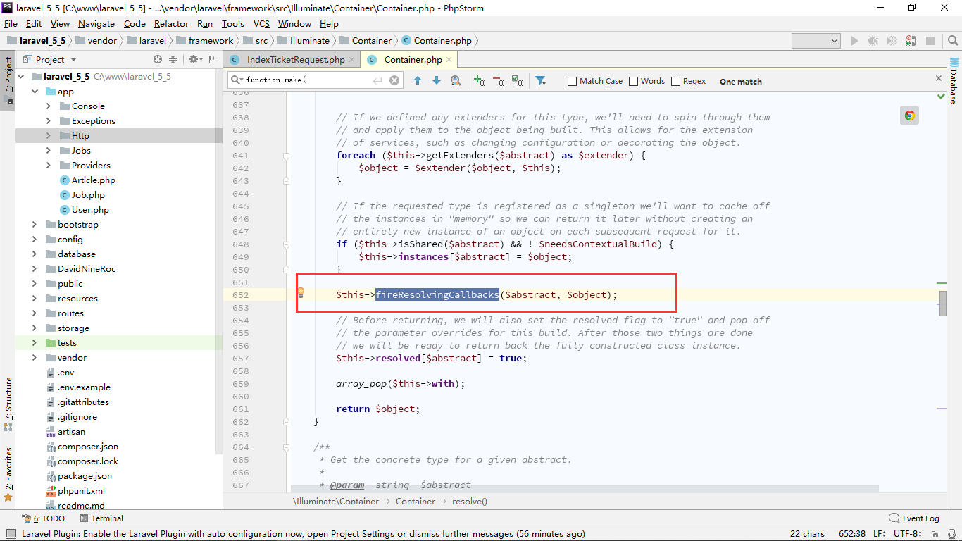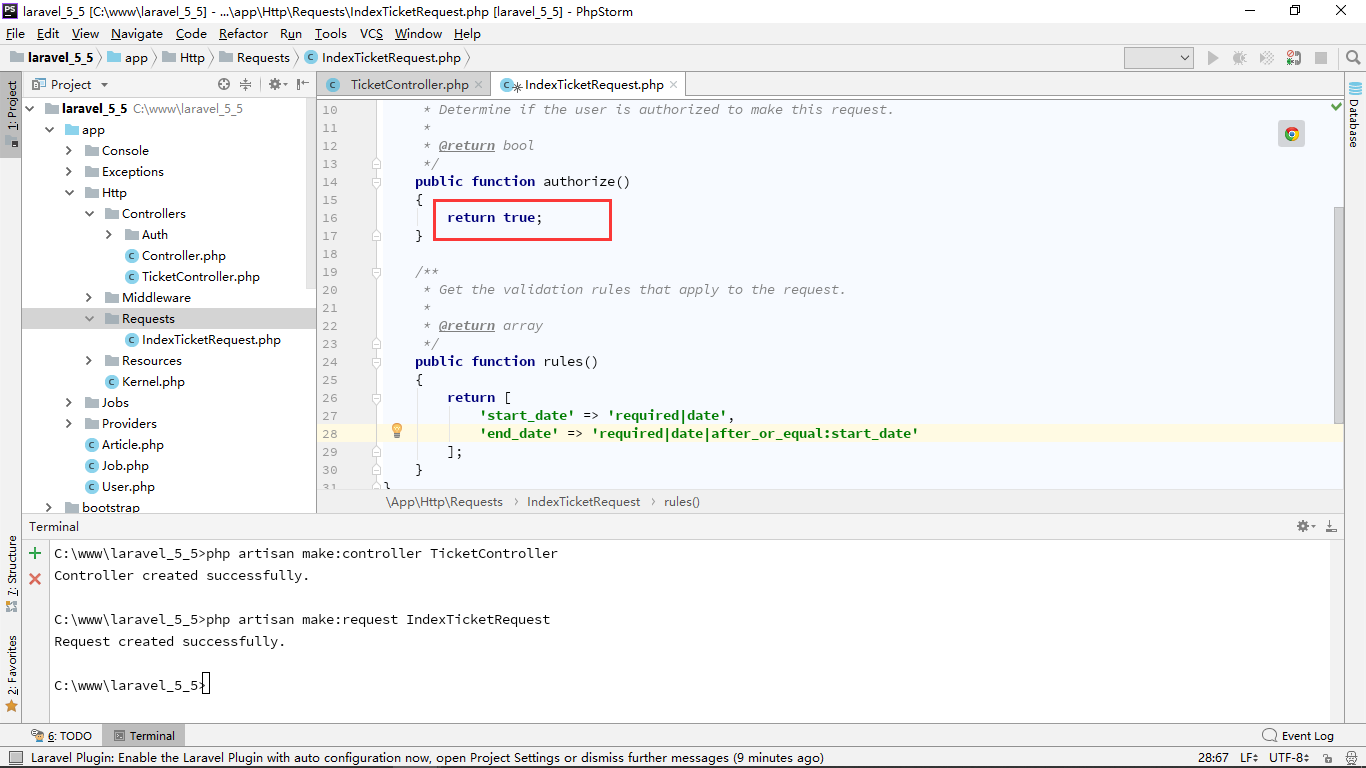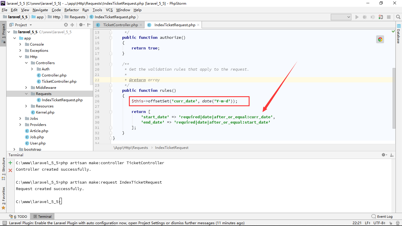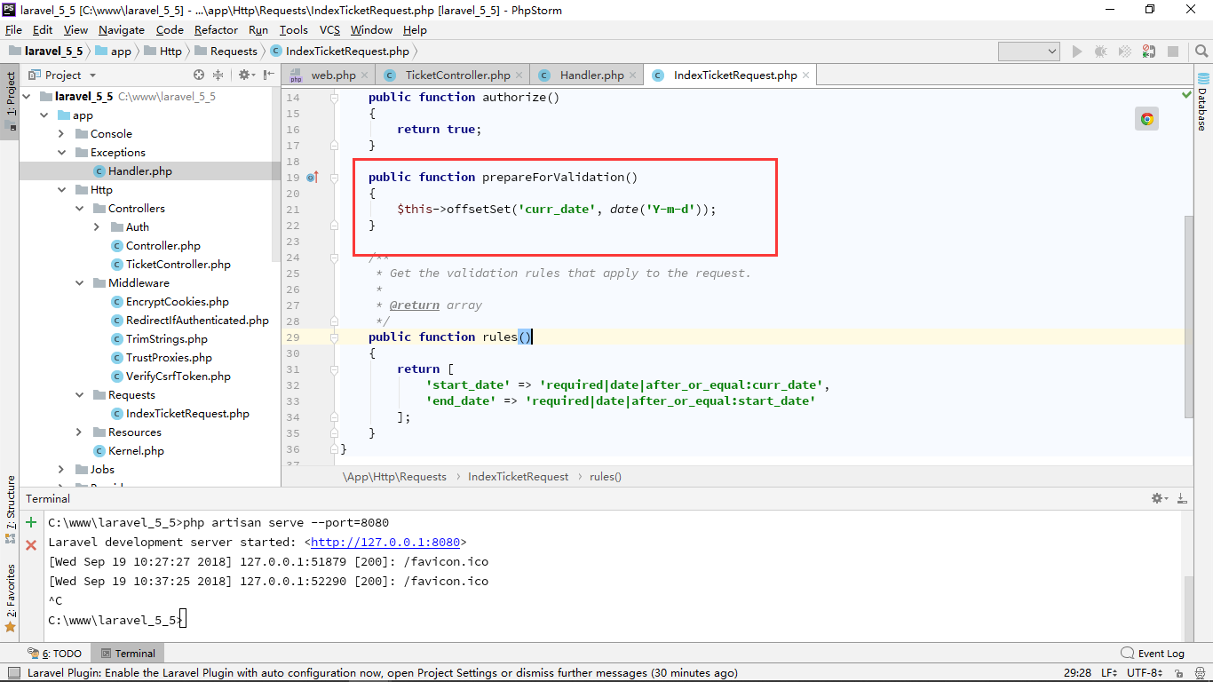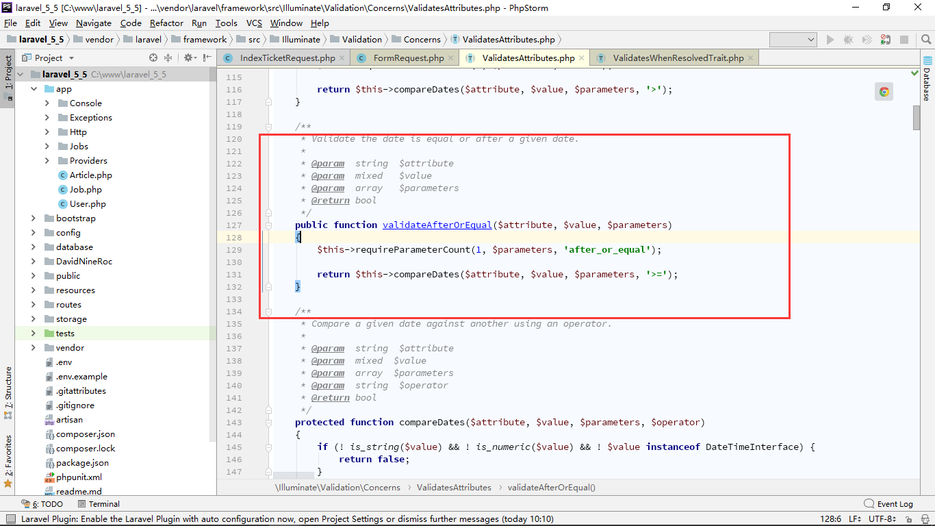 IndexTicketRequest类,没有这个方法,去到父类,发现实现了ValidatesWhenResolved,而validate是在trait的ValidatesWhenResolvedTrait