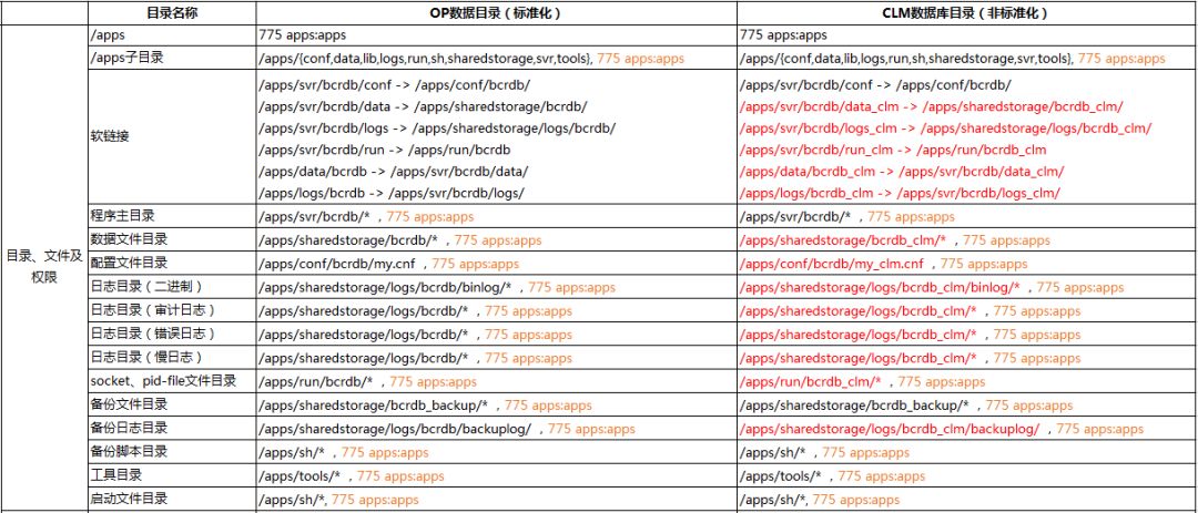 OP实例沿用原有标准化目录,CLM实例相关的数据目录、日志目录、程序目录、软连接、pid、socket文件路径要重新指定,如下表所示: