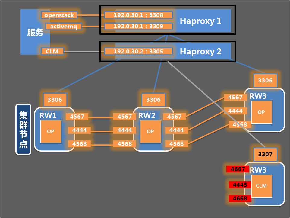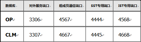 数据库对外服务的端口:OP实例的端口是3306,CLM实例的端口是3307;
