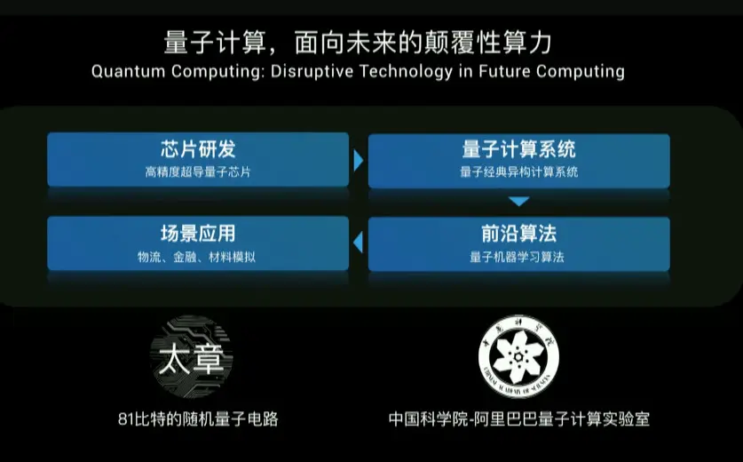 除了 AI 芯片,量子计算也是达摩院的重要研究方向之一。今年 5 月,「太章」成为了全球首个 81 比特随机量子电路模拟器。张建锋也宣布预计两三年内做出量子芯片系统,并希望阿里可以形成全球首个量子生态系统。