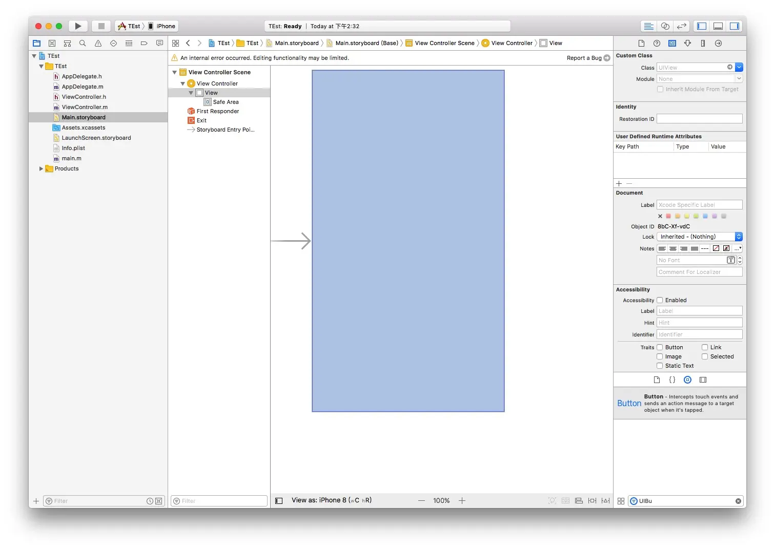 升级Xcode10后发现操作发现无法编辑storyboard上的控件