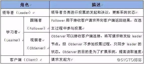 学习者(learner),包括跟随者(follower)和观察者(observer),follower用于接受客户端请求并想客户端返回结果,在选主过程中参与投票Observer可以接受客户端连接,将写请求转发给leader,但observer不参加投票过程,只同步leader的状态,observer的目的是为了扩展系统,提高读取速度。