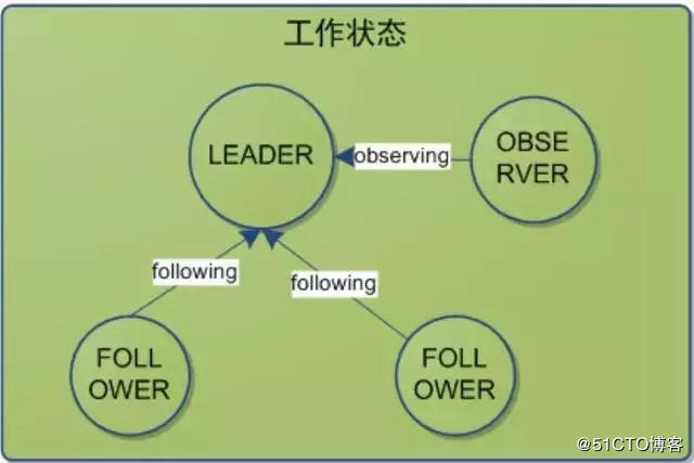 FOLLOWING:leader已经选举出来,当前Server与之同步。
