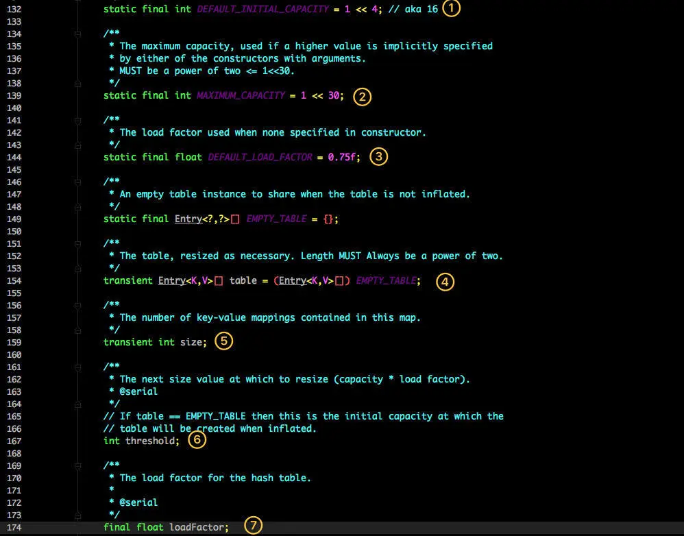 table真正存放数据的数组。Map存放数量的大小。- 桶大小,可在初始化时显式指定。