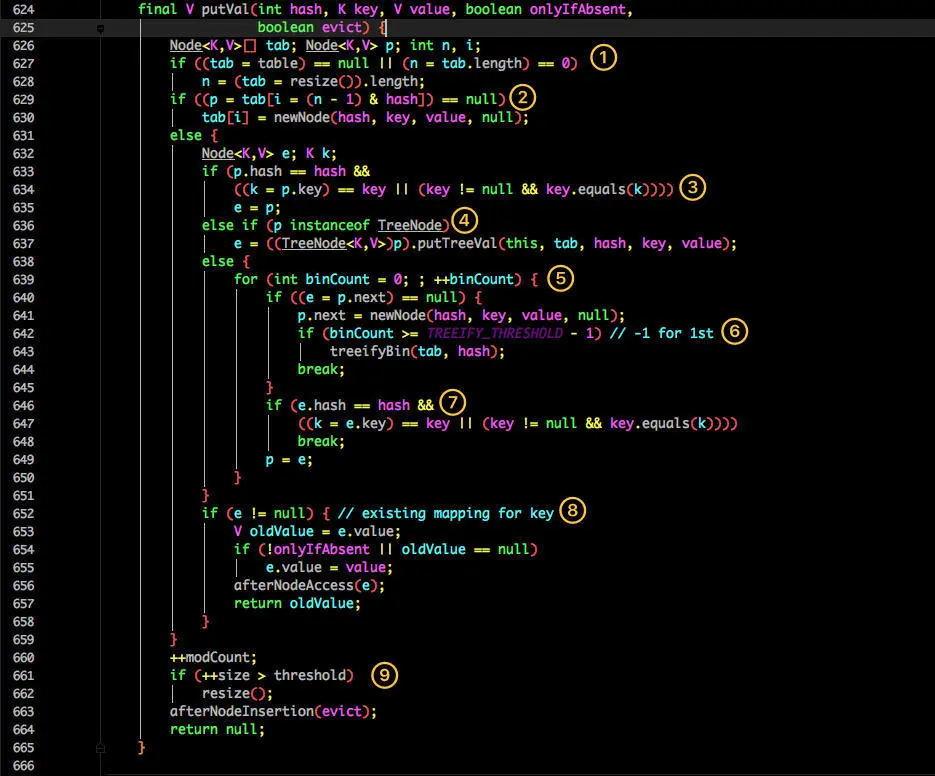 final V put(K key, int hash, V value, boolean onlyIfAbsent) {
