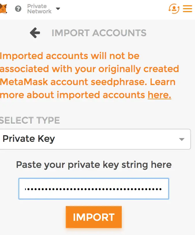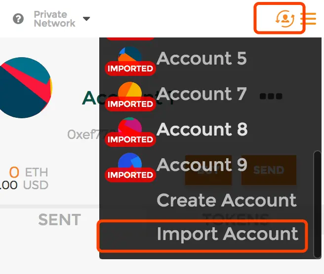 2.浏览器还需要安装有MetaMask插件。将MetaMask的网络设置为Localhost 8545,然后从testrpc提供的测试地址中选一个导入到MetaMask中