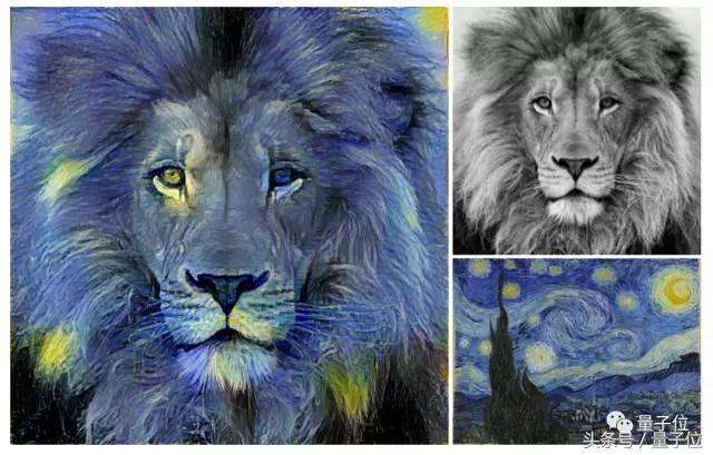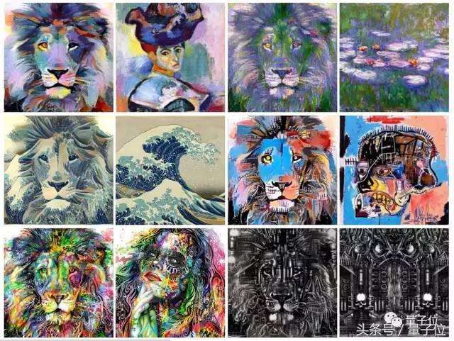 如上图所示,把梵高画作的风格,迁移到一张狮子的照片上,就得到一个星空风格的狮子照片,这就是所谓的风格迁移。下面再展示一组这个项目的风格迁移,能把这张狮子的照片,变成哪些非常有趣的效果。