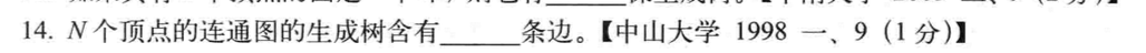连通图的生成树:包含图中全部顶点的一个极小连通子图(既要包含全部的顶点,又要使得边最少,n个顶点,n-1条边)