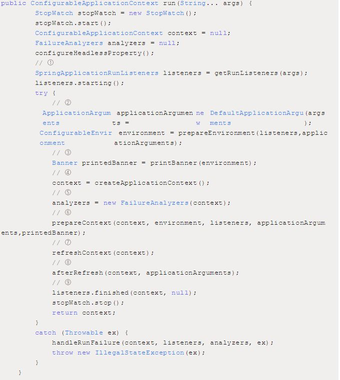Spring Boot应用的整个启动流程都封装在SpringApplication.run方法中,其整个流程真的是太长太长了,但本质上就是在Spring容器启动的基础上做了大量的扩展,按照这个思路来看看源码: