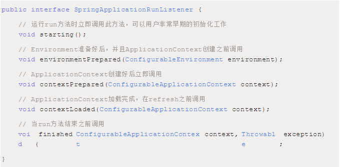 简单的分析一下其实现流程,首先看下SpringApplicationRunListener的源码: