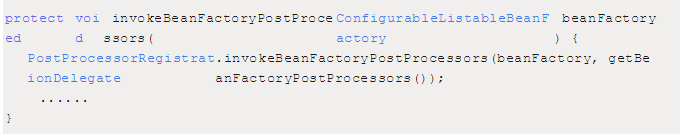 然后你就可以进入到 PostProcessorRegistrationDelegate.invokeBeanFactoryPostProcessors()方法了,这个方法除了会遍历上面的3个BeanFactoryPostProcessor处理外,还会获取类型为 BeanDefinitionRegistryPostProcessor的bean: org.springframework.context.annotation.internalConfigurationAnnotationProcessor,对应的Class为 ConfigurationClassPostProcessor。 ConfigurationClassPostProcessor用于解析处理各种注解,包括:@Configuration、@ComponentScan、@Import、@PropertySource、@ImportResource、@Bean。当处理 @import注解的时候,就会调用<自动配置>这一小节中的 EnableAutoConfigurationImportSelector.selectImports()来完成自动配置功能。其他的这里不再多讲,如果你有兴趣,可以查阅参考资料6。